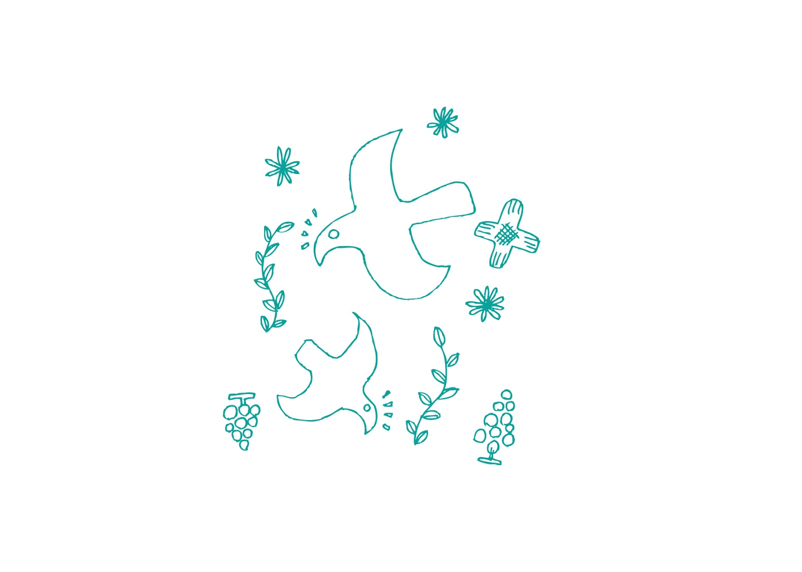 イラスト 手刷り絵本風年賀状 幸せを運ぶ鳥 朝靄 鳥 イラスト デザイン 年賀状 デザイン 名刺 デザイン